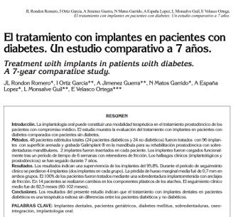 En un artículo publicado en España por Avances en Estomatología estudiaron las diferencias en implantes colocados a pacientes sanos con respecto a pacientes diabéticos.
